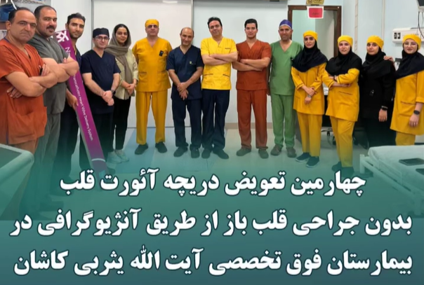 عمل پیشرفته تعویض دریچه آئورت قلب بدون جراحی قلب باز (تاوی) برای چهارمین بار در کاشان و در بیمارستان فوقتخصصی آیتالله یثربی با موفقیت انجام