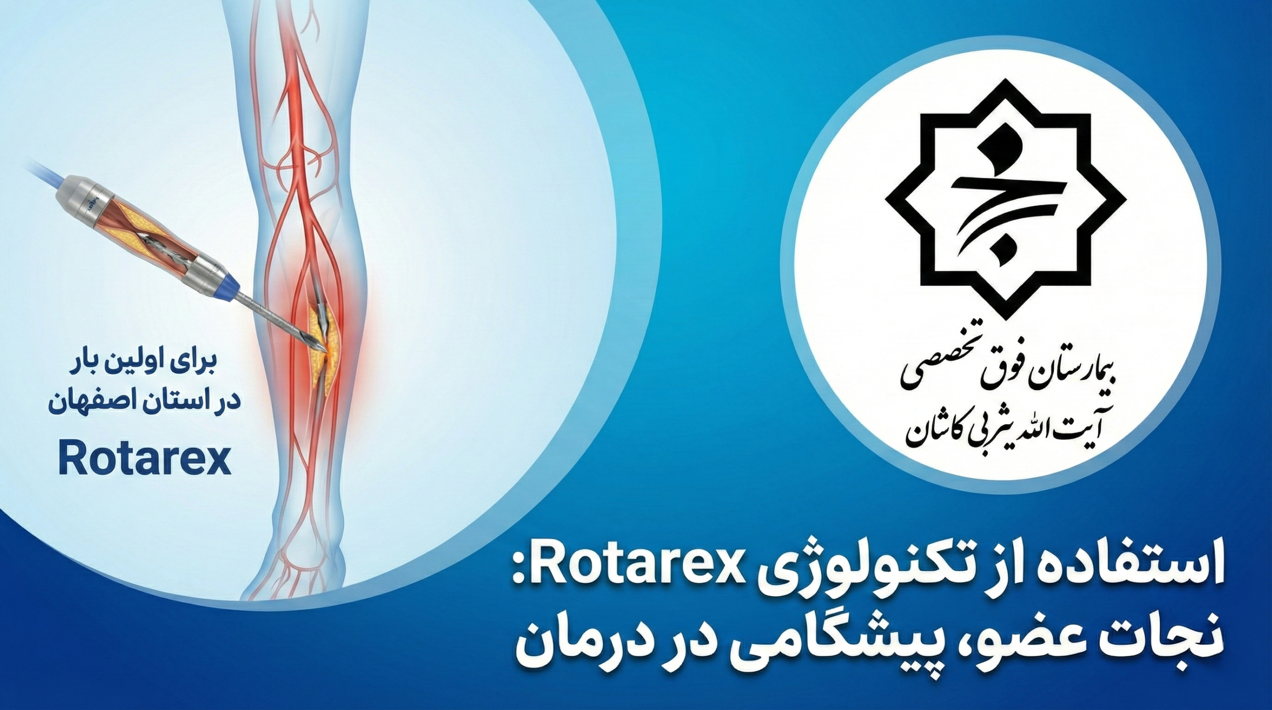 بیمارستان فوقتخصصی آیتالله یثربی کاشان با انجام موفقیتآمیز یک عمل حیاتی، نام خود را در فهرست مراکز پیشرو کشور ثبت کرد. برای اولین بار در استان اصفهان و تنها در چهارمین شهر کشور (کاشان)، عمل پیشرفته اترکتومی با دستگاه روتارکس (Rotarex) با موفقیت انجام شد و از قطع پای بیمار جلوگیری گردید.